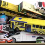 いろんな救急車のミニカーを大きな箱に集めました。